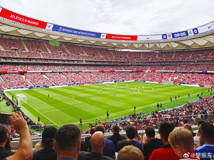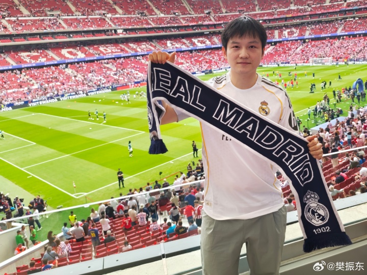 樊振东晒出现场观战的照片,写道:感谢 @LALIGA西甲职业联赛 的邀请,第一次随皇马征战客场应战 ,在大都会运动活动 场 亲历德比的剧烈 追尾与"the power of our fútbol"⚽