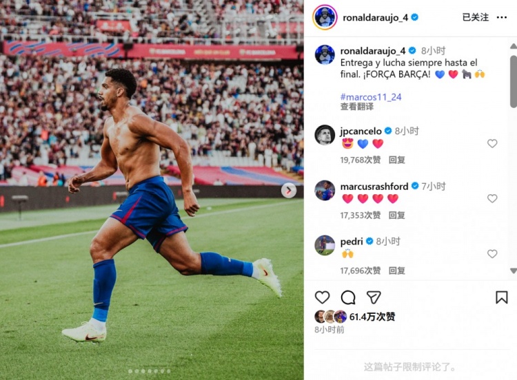 赛后阿劳霍也在社媒晒出得分 后脱衣庆祝的照片,免费看球网站直播入口配文写道:“永远拼尽全力并坚守 到最后一刻,助威 巴萨!”
