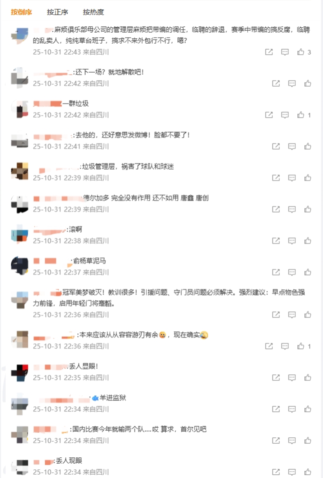 退赛争冠!蓉城官博被冲,大量球迷涌入评论区怒骂管理层引援不力