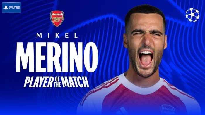 连进两球!梅里诺当选阿森纳3-0布拉格斯拉维亚一役全场最佳