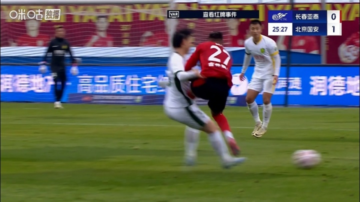 逃过一劫?卡米洛飞蹬江文豪腹部染黄,VAR介入认定非驱逐