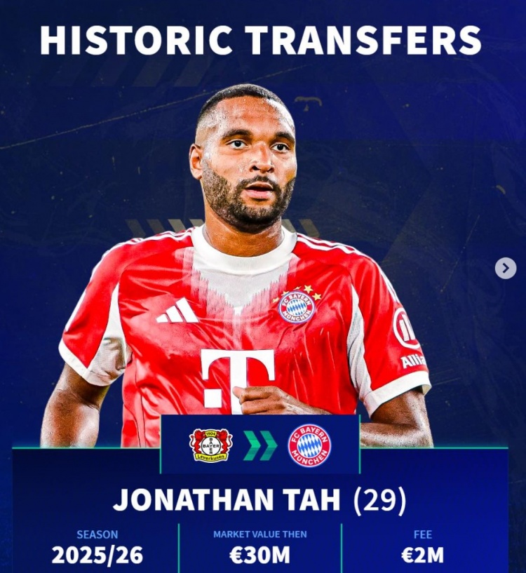 11月1日讯 拜仁将在本轮德甲焦点战对阵勒沃库森,若纳坦-塔对阵旧主,《转会市场》也列出了新世纪两队之间的转会: