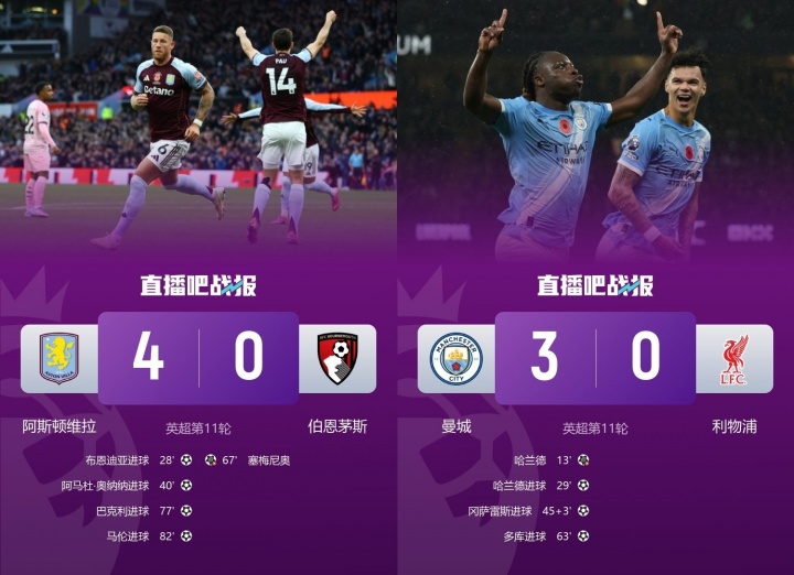 阿斯顿维拉本轮4-0大胜伯恩茅斯,足球直播在线高清近6轮5胜1负,豪取15分,积分从第18名暴涨至英超第6。