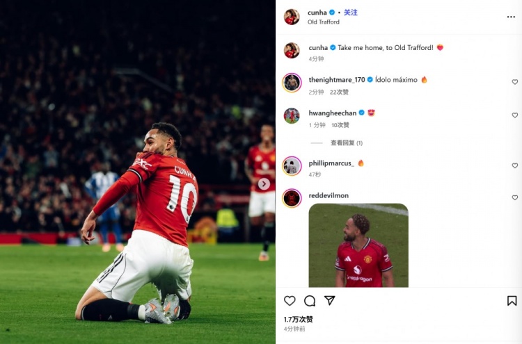 打进处子球!库尼亚社媒晒亲吻队标 照:带我回家,来老特拉福德
