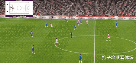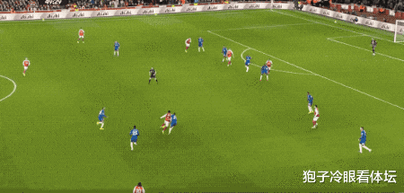 第15分钟,看到桑切斯站位阵型站位靠前,埃泽刚过中场圈就击球吊射,桑切斯快速回撤,化解险情。