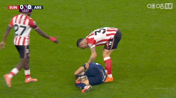 不满!桑德兰得分 前,扎卡放倒反击中的梅里诺,对其贴脸怒喷