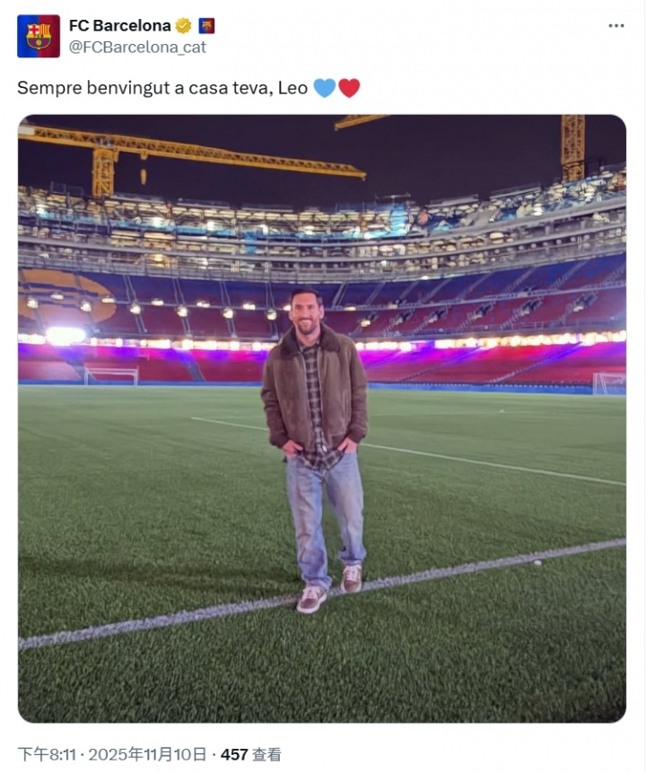 11月10日讯 梅西ins晒照重返诺坎普两小时后,巴萨官方发文:欢迎你随时回家,免费看球网站直播入口莱奥。