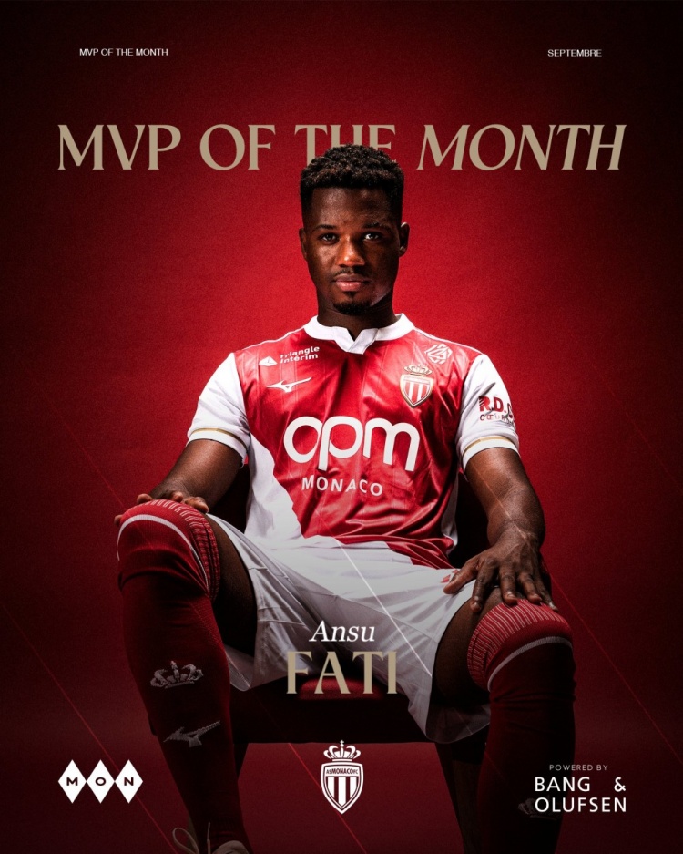 3场4球!法蒂当选摩纳哥9月最佳球员