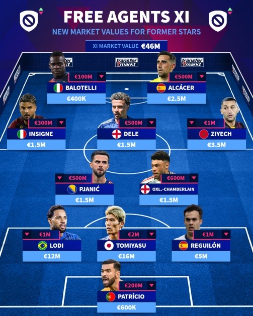 中场球员:皮亚尼奇150万欧、张伯伦150万欧、因西涅150万欧、阿里150万欧、齐耶赫350万欧