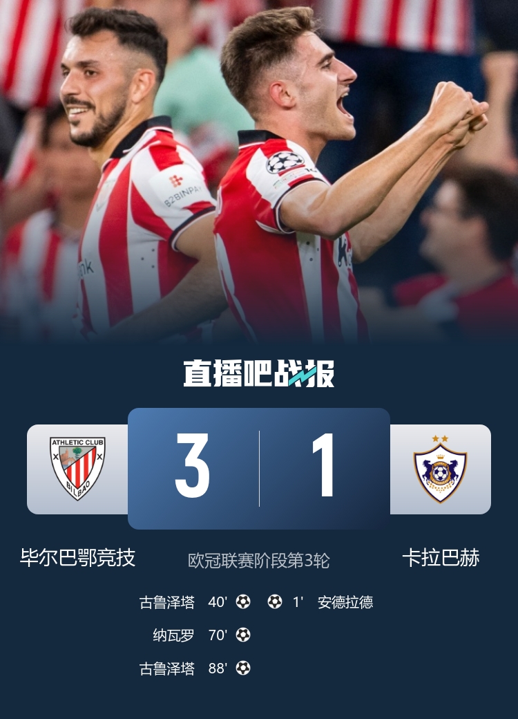 毕巴本轮欧冠3-1击败卡拉巴赫,毕巴反转 取胜,吉鲁泽塔双响。